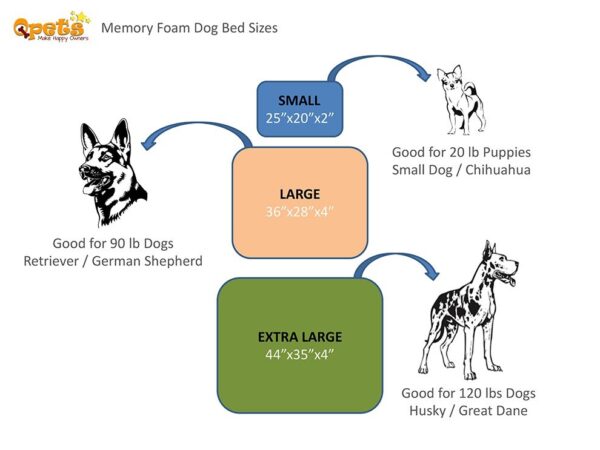 - 3 Sizes for all pets! | Small: 25 x 20 x 5.5 Inches / Large: 36 x 28 x 9 Inches / Extra Large: 44 x 34 x 10 Inches
